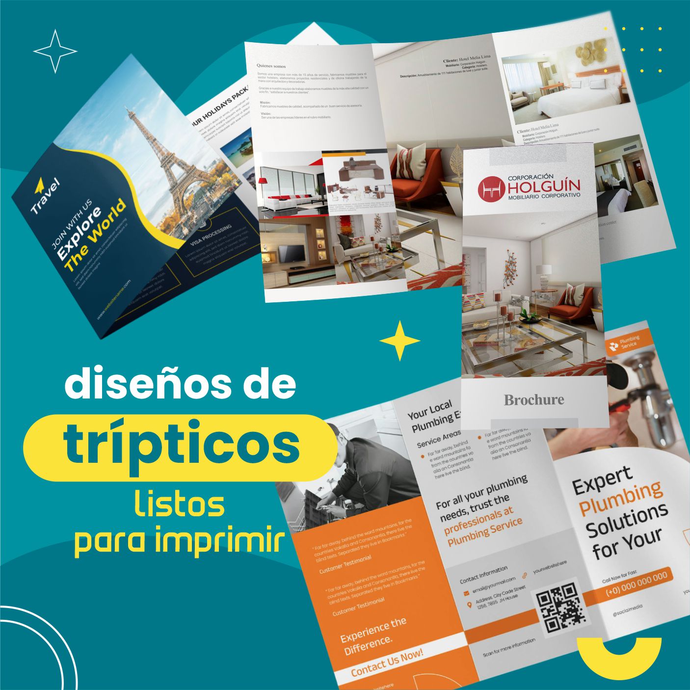Deberás enviarnos en un documento word o pdf todo el contenido para tu brochure, el logo, la reseña, los servicios, etc. ordenado y corregido. Nosotros nos encargamos del diseño, la estructura y las imágenes que necesite el trabajo.